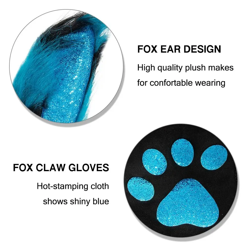 Kpop Demon Derby Faux Fur Cat Wolf Fox Costume Accessories Festival Party Masquerade Dress Up Ear Headband Gloves and Tail Set Xmas Halloween