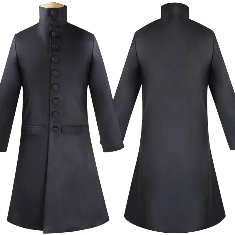 Wizard Black Cloak Costume with Wand and Wig – Halloween Party Robe Cosplay Costume
