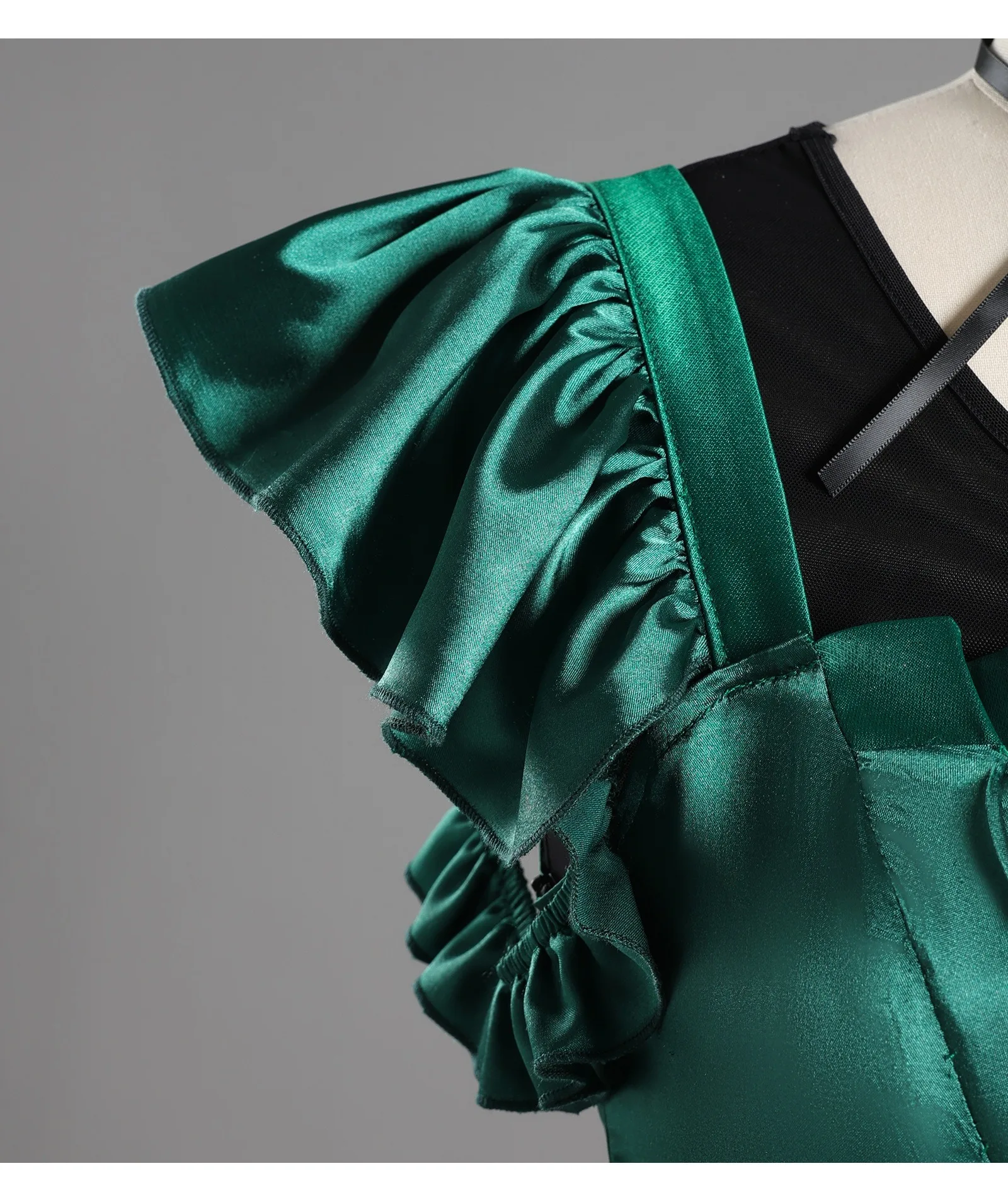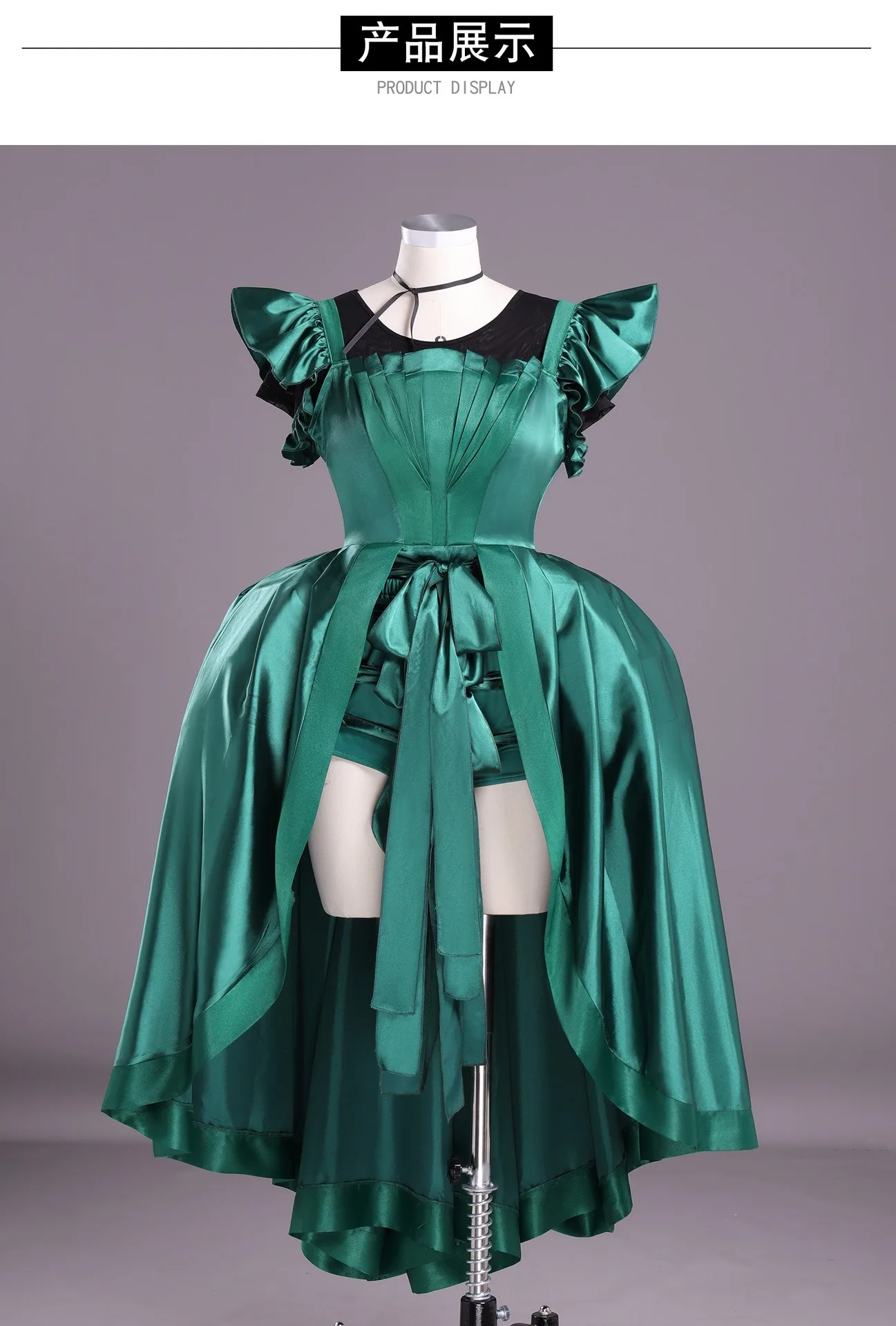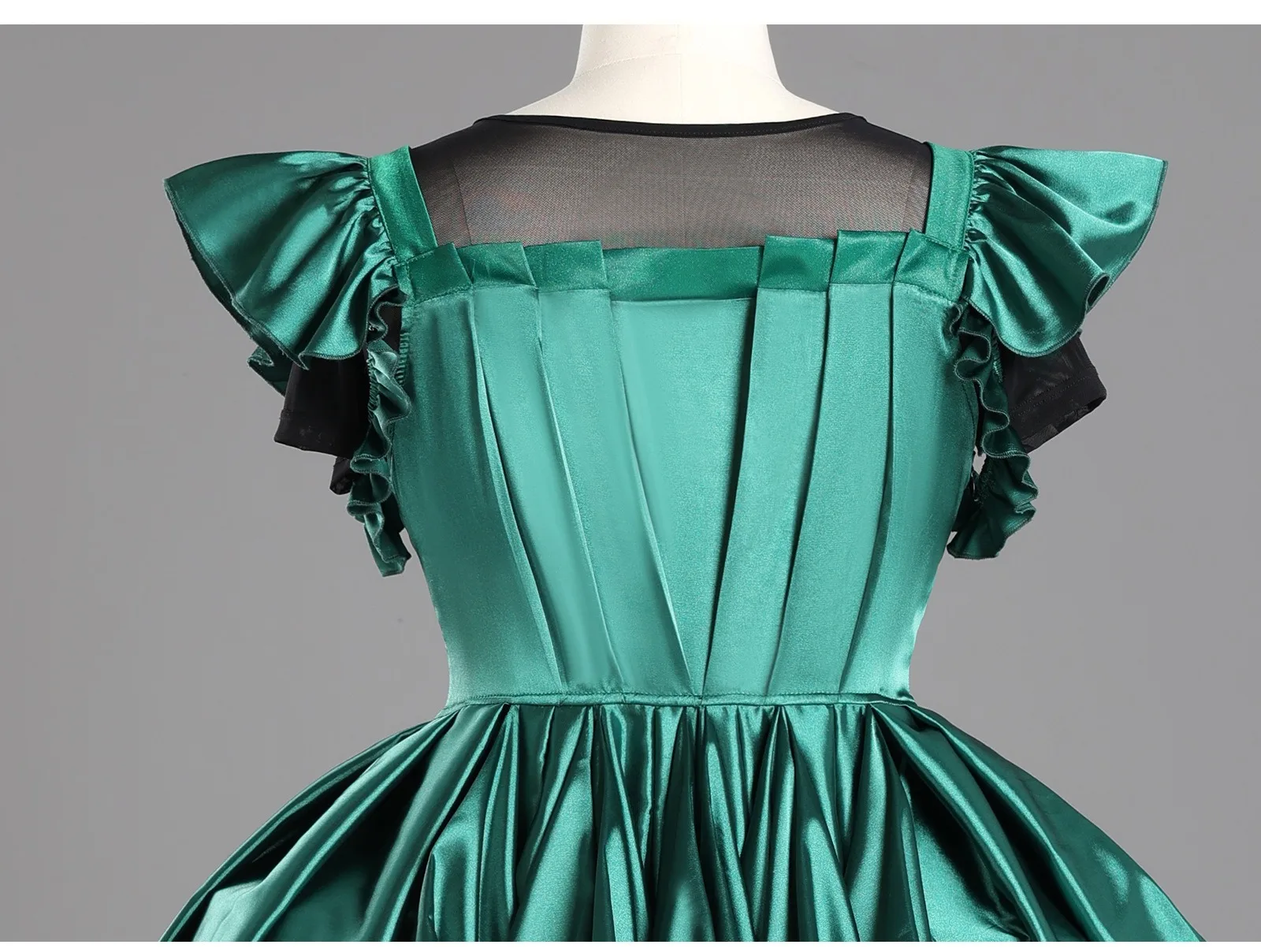 Women Green Gothic Dress – Long Sleeve Vintage Evening Cosplay Costume for Halloween Christmas Party