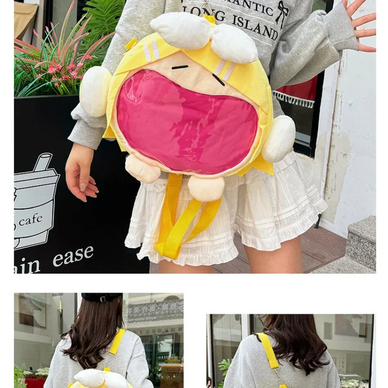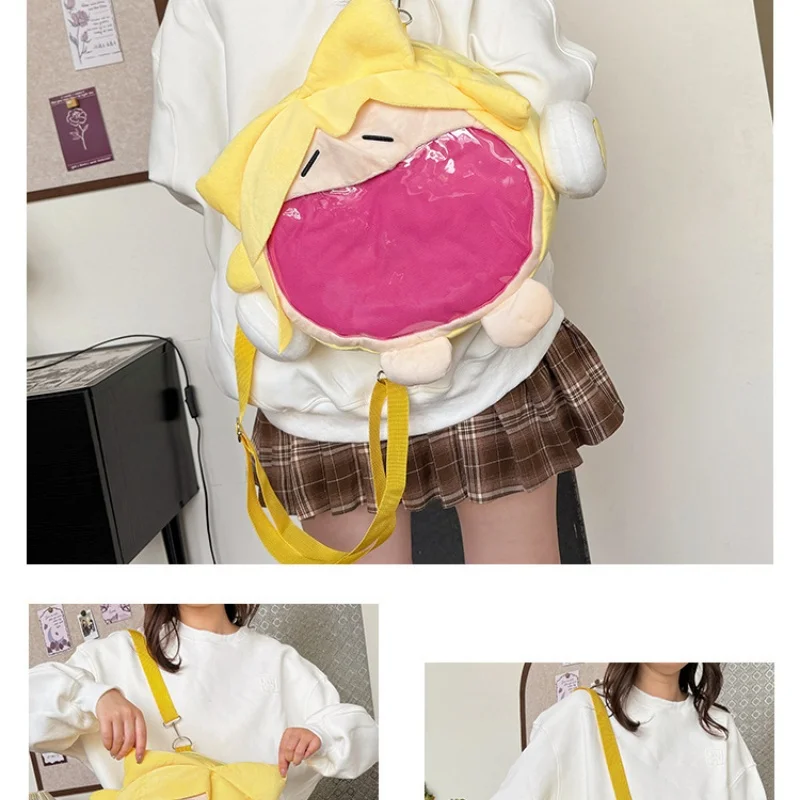 Made from high-quality plush fabric, this kawaii ita bag feels soft and comfortable while offering large capacity storage space for your phone, wallet, cosmetics, and daily essentials. The adjustable yellow shoulder strap makes it easy to wear as a crossbody bag or shoulder bag, perfect for school, conventions, concerts, or casual outings.