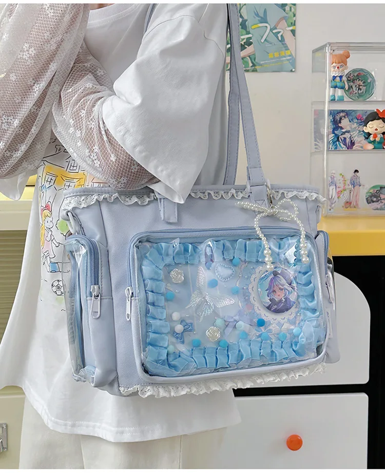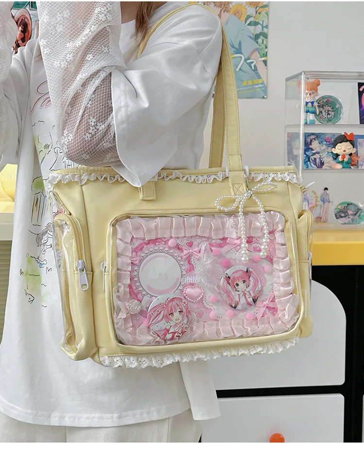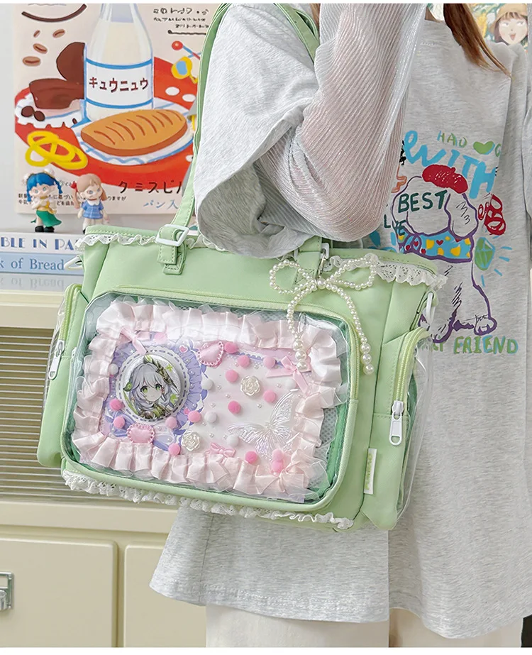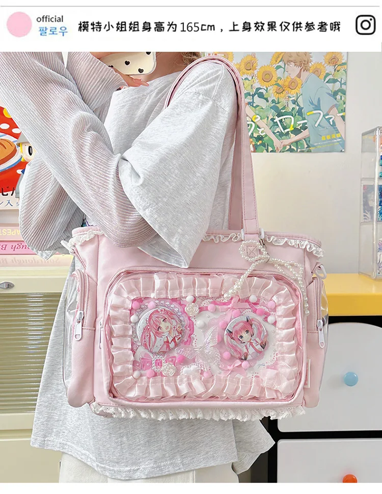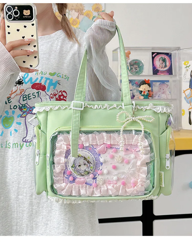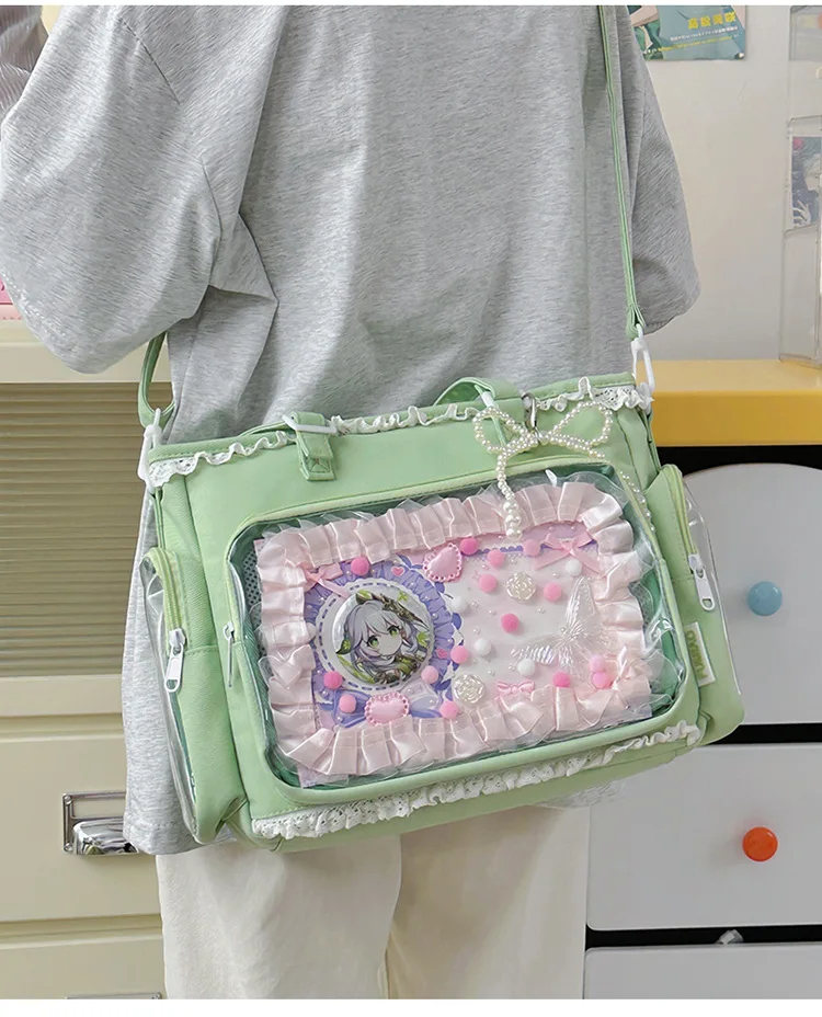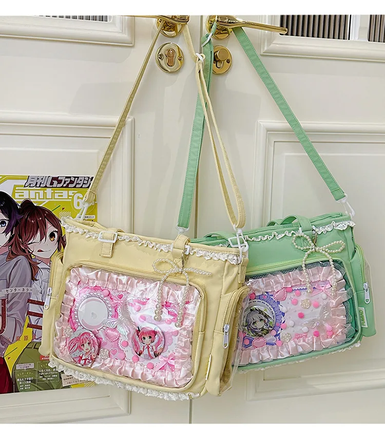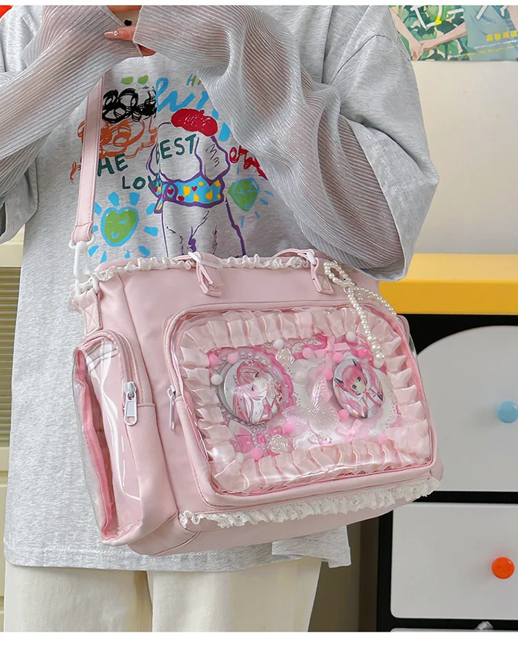 Large Capacity Kawaii Ita Bag Ballet Style, Clear Window Crossbody Shoulder Bag, Cute School Fashion Purse Gift for Teen Girls