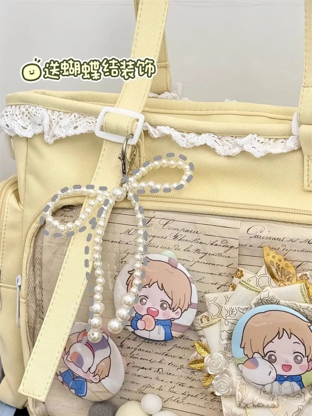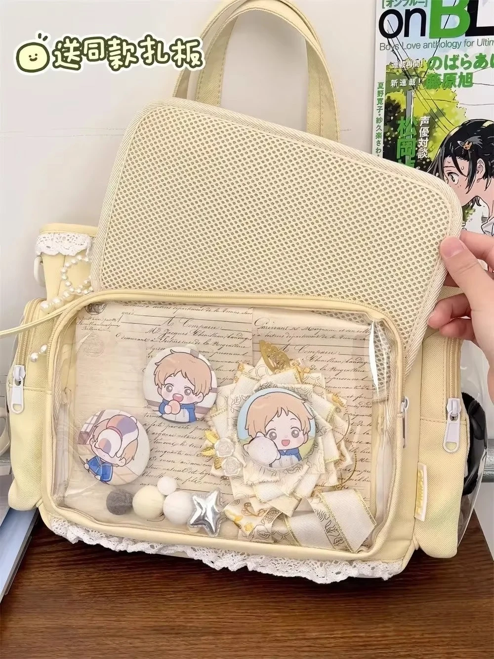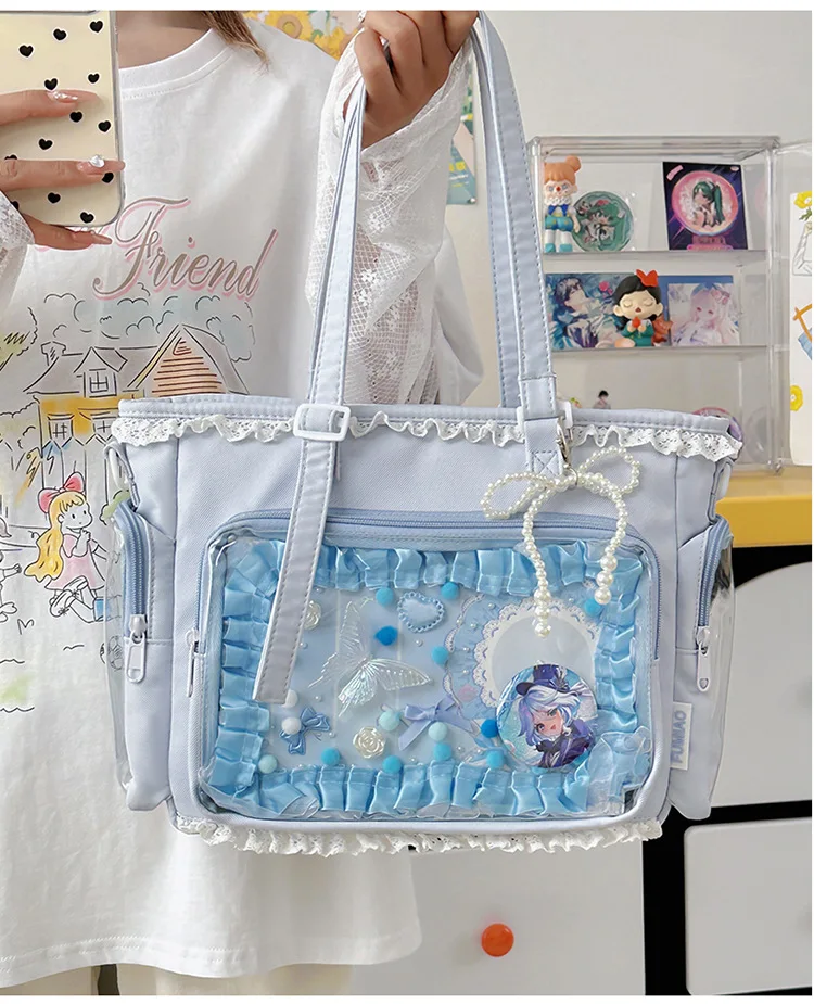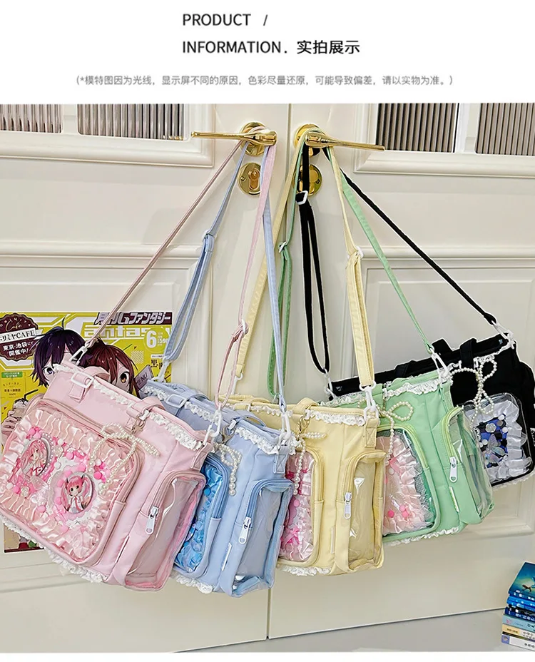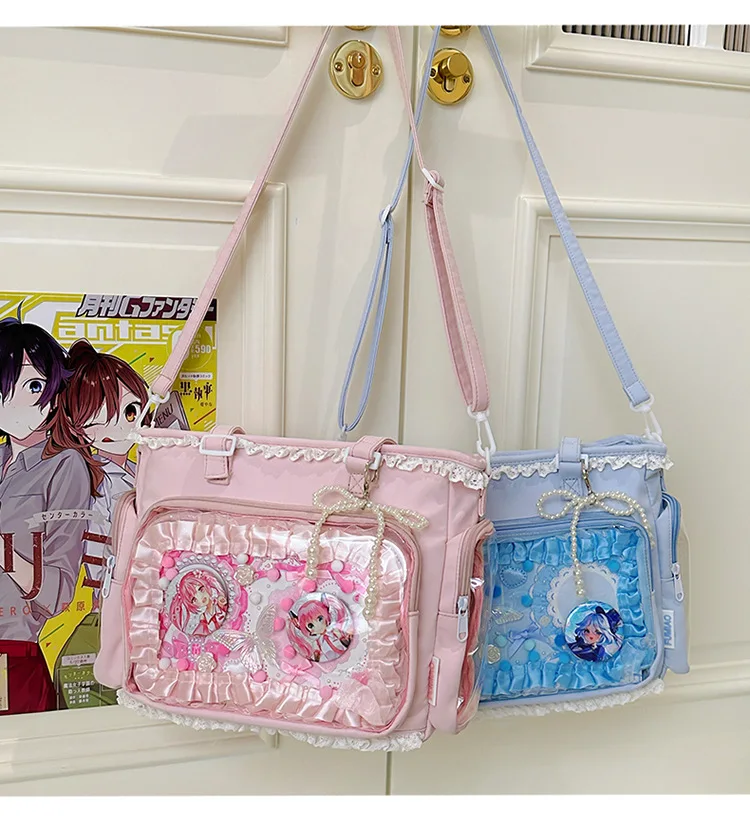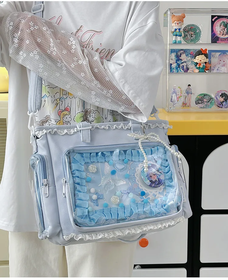 Large Capacity Kawaii Ita Bag Ballet Style, Clear Window Crossbody Shoulder Bag, Cute School Fashion Purse Gift for Teen Girls