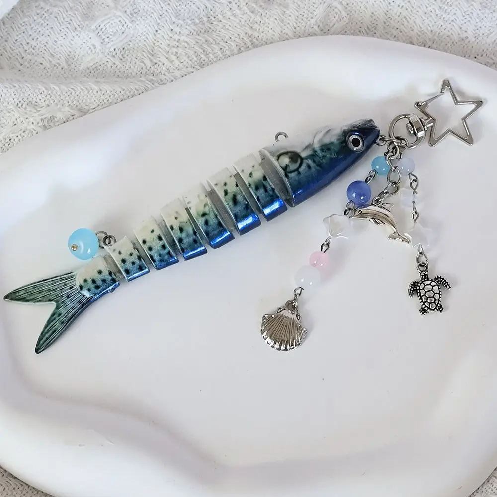 Articulated Fish Keychain, Flexible Simulation Fish Charm, Multi Jointed Plastic Keyring, Backpack Bag Pendant Gift