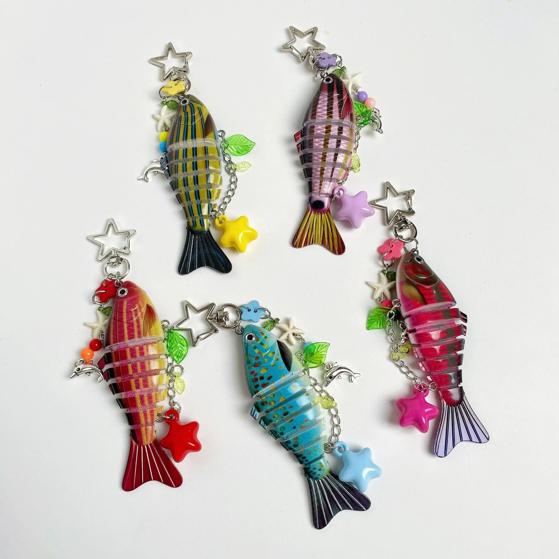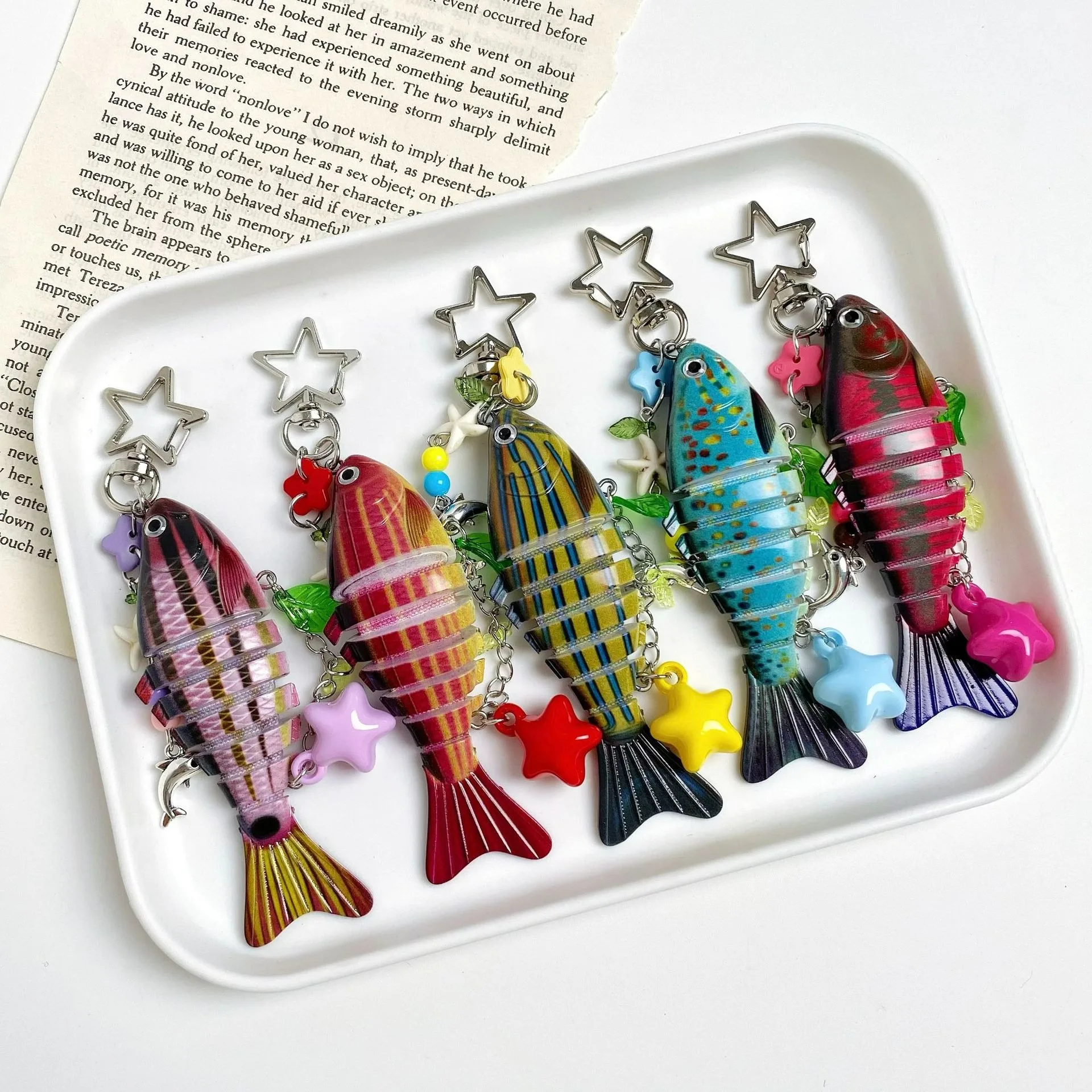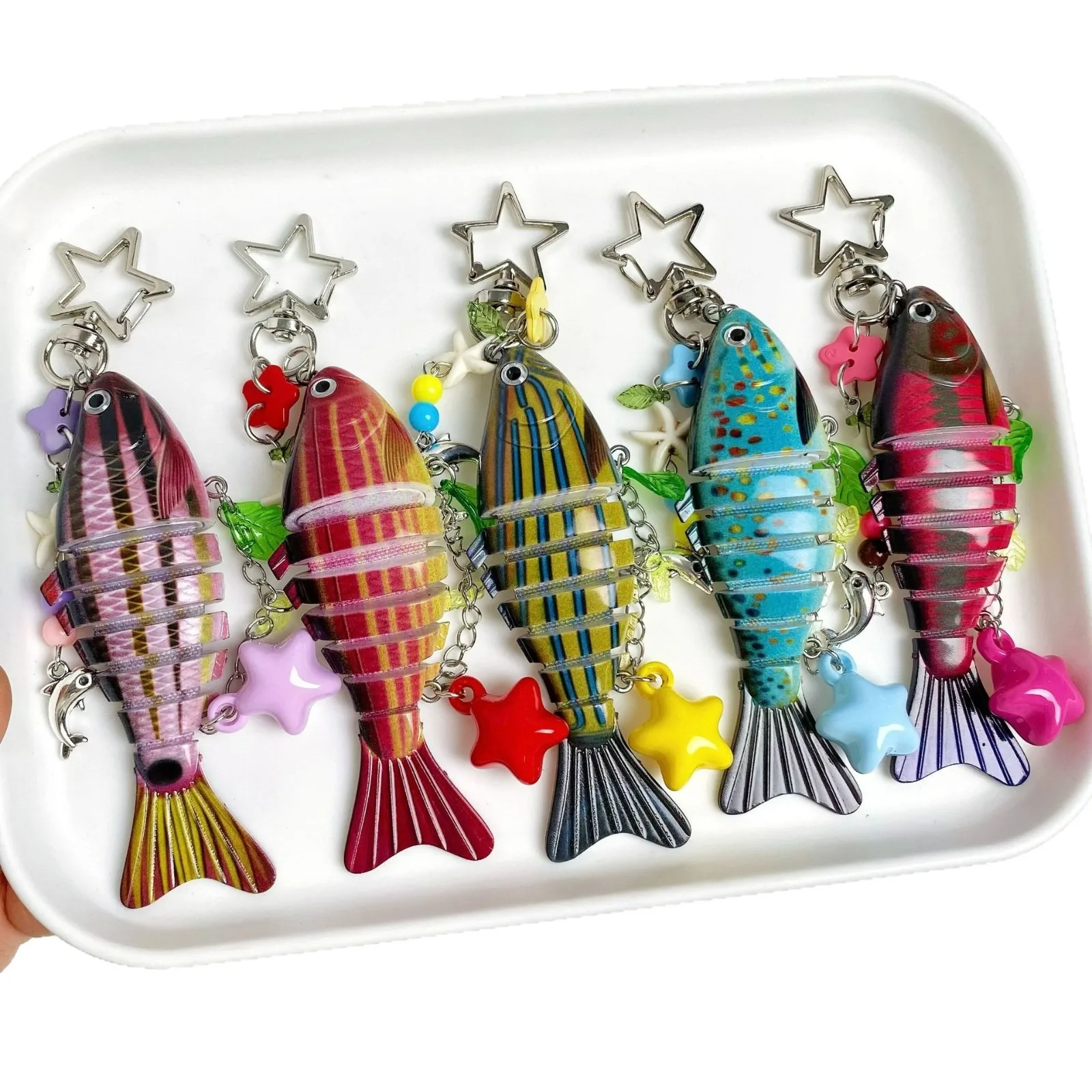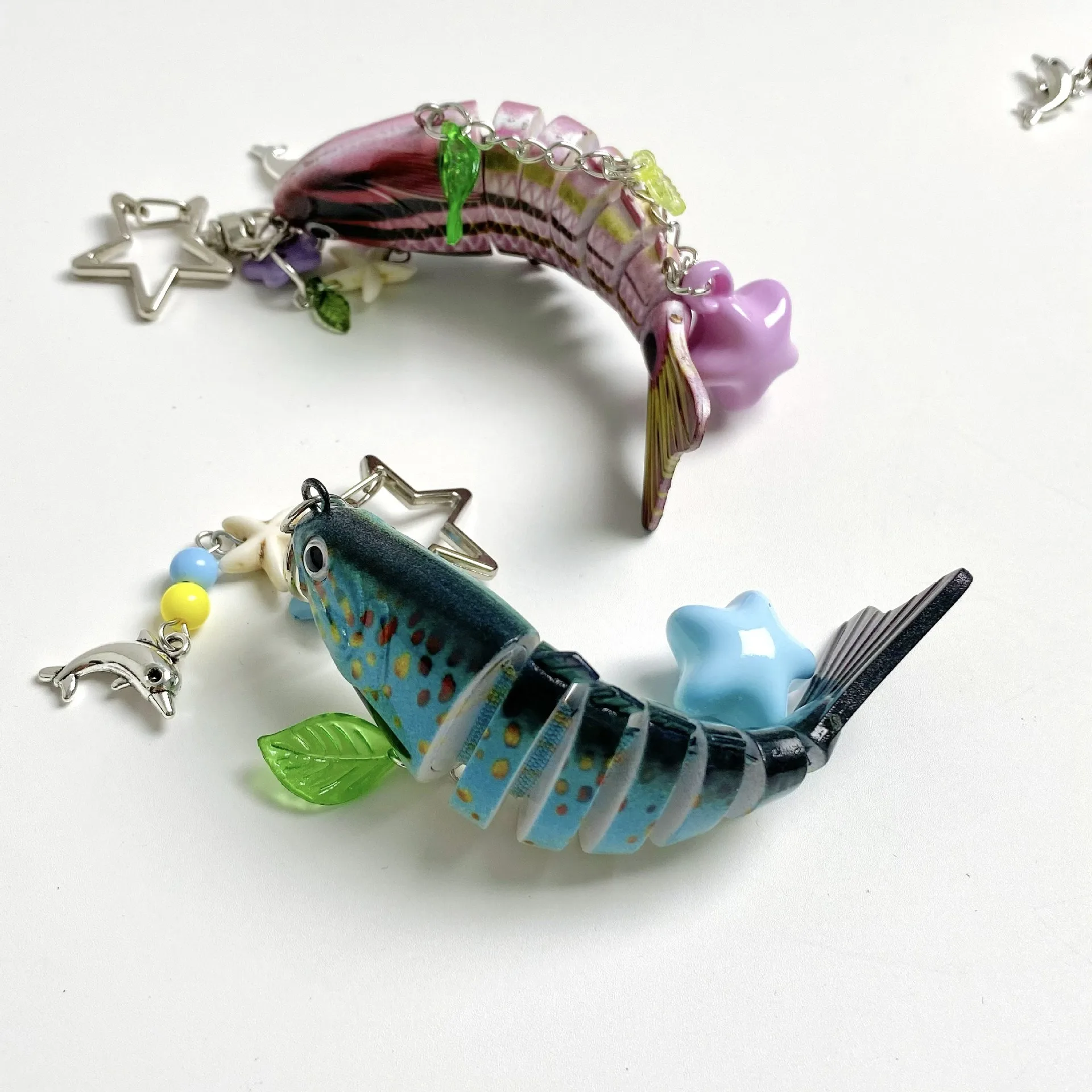 Tropical Fish Keychain, Realistic Swimbait Charm, Fishing Lover Gift, Ocean Multi Joint Fish, Bag Charm Phone Accessory
