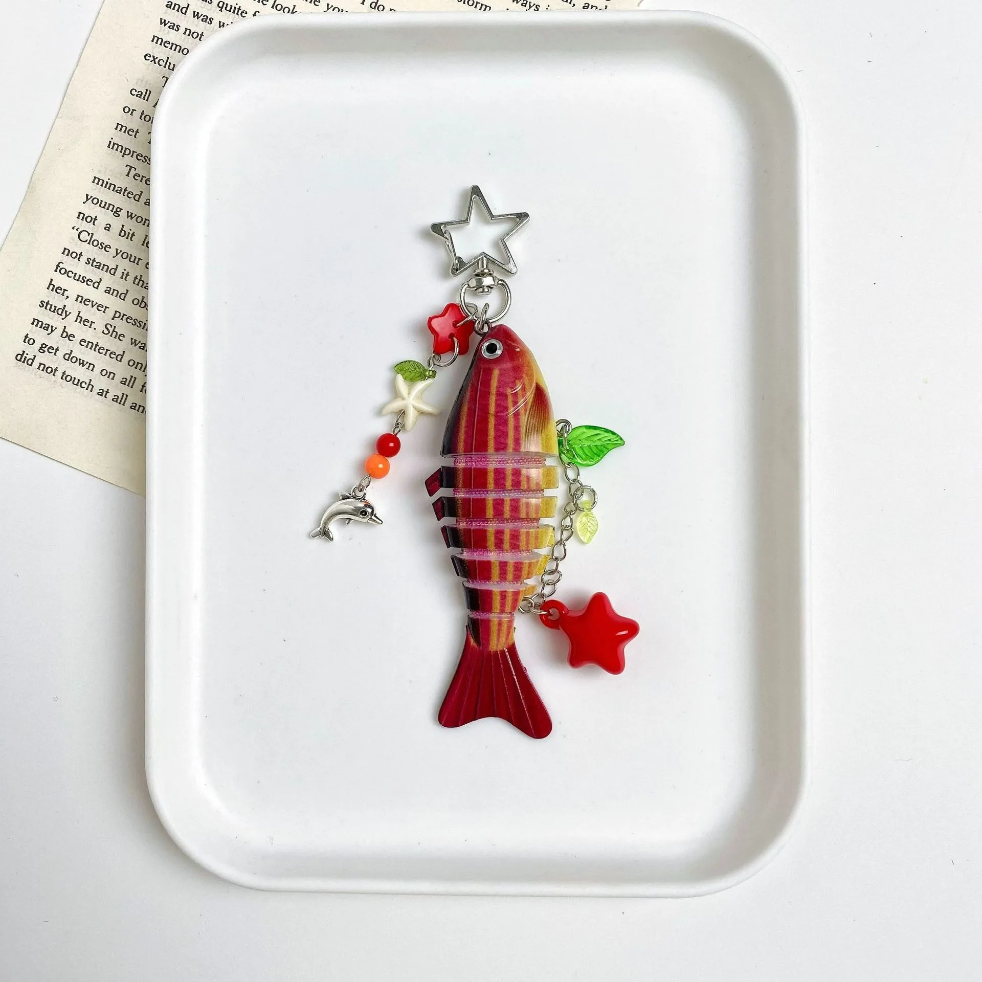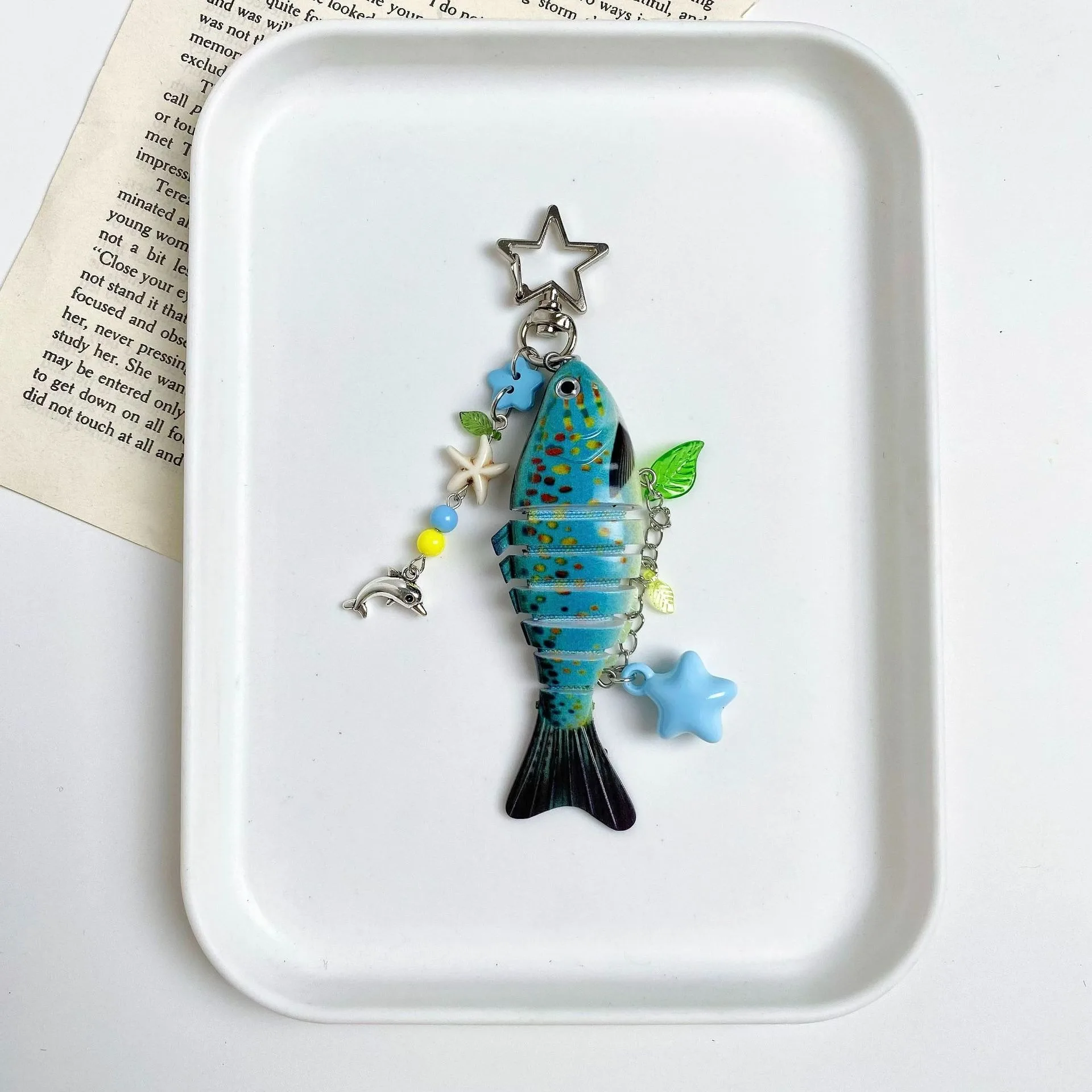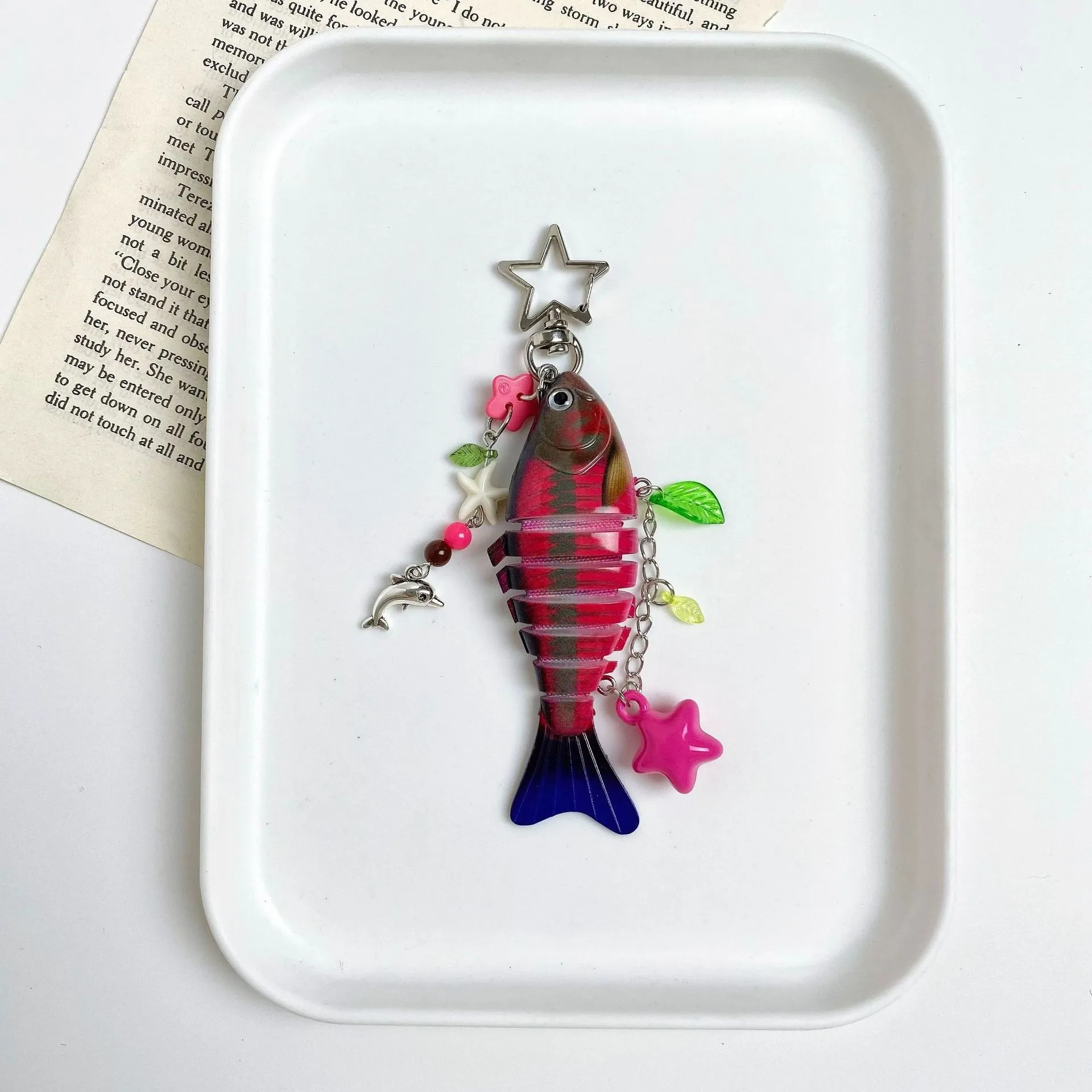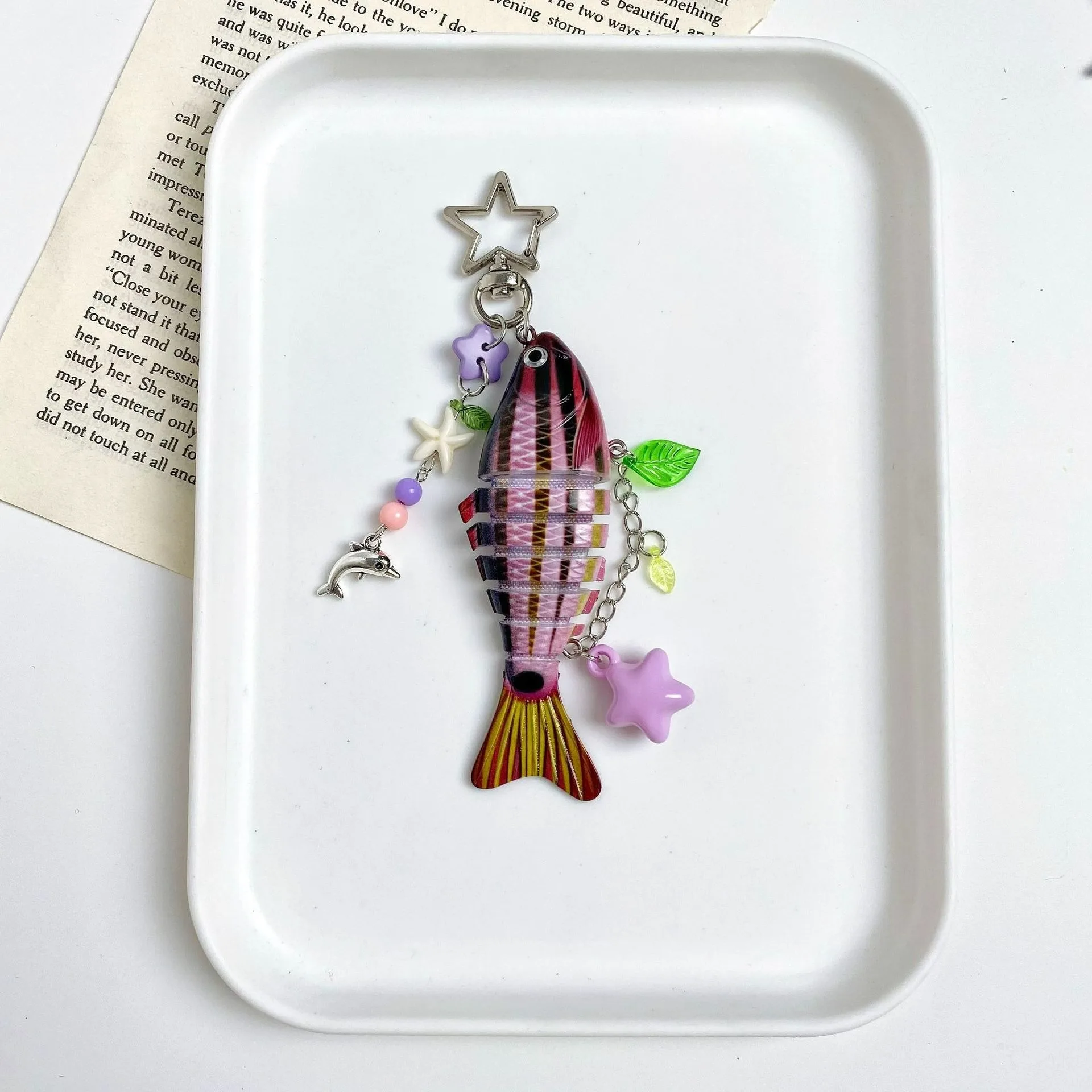 Tropical Fish Keychain, Realistic Swimbait Charm, Fishing Lover Gift, Ocean Multi Joint Fish, Bag Charm Phone Accessory