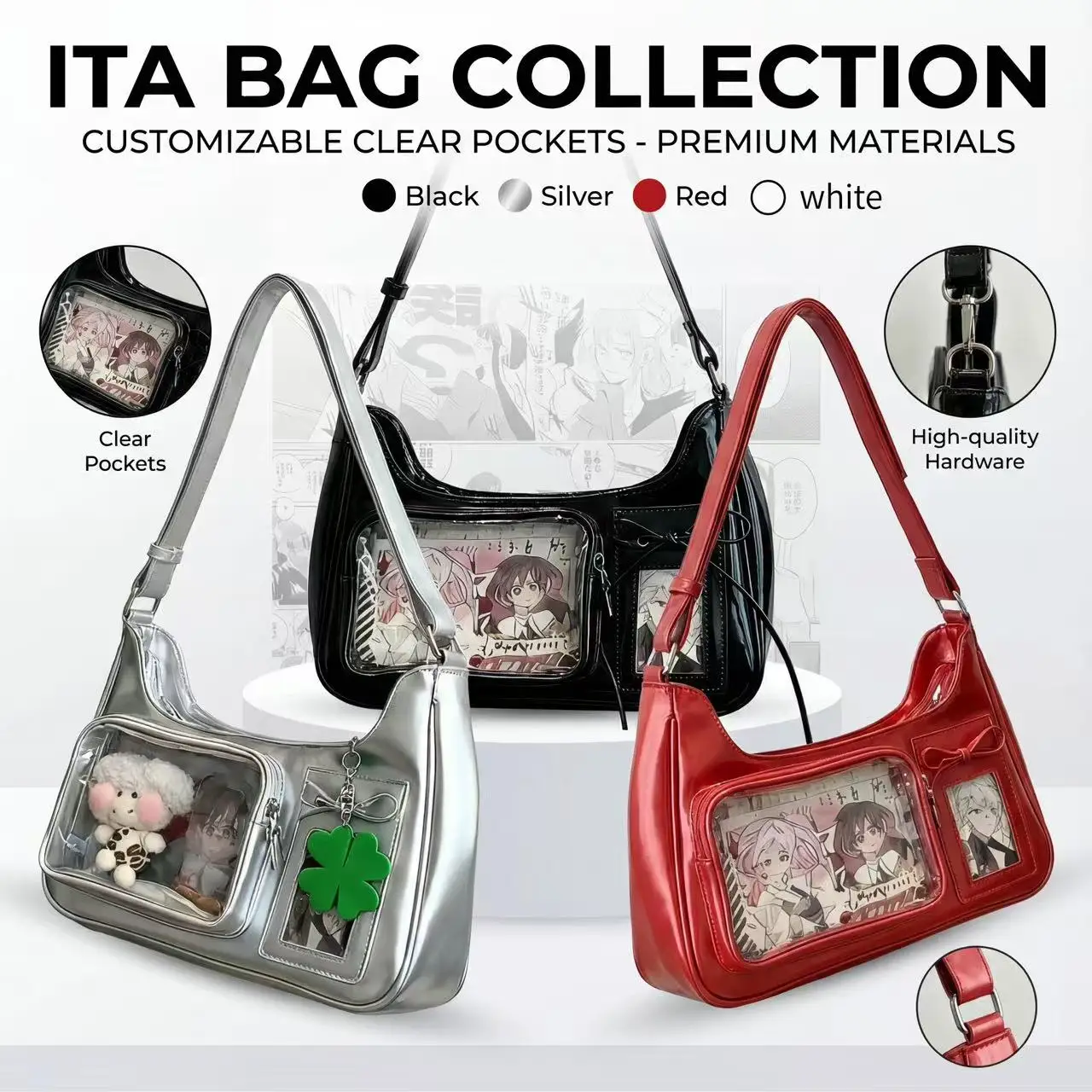 Y2K Harajuku Ita Bag, Transparent School Crossbody Shoulder Purse for Women